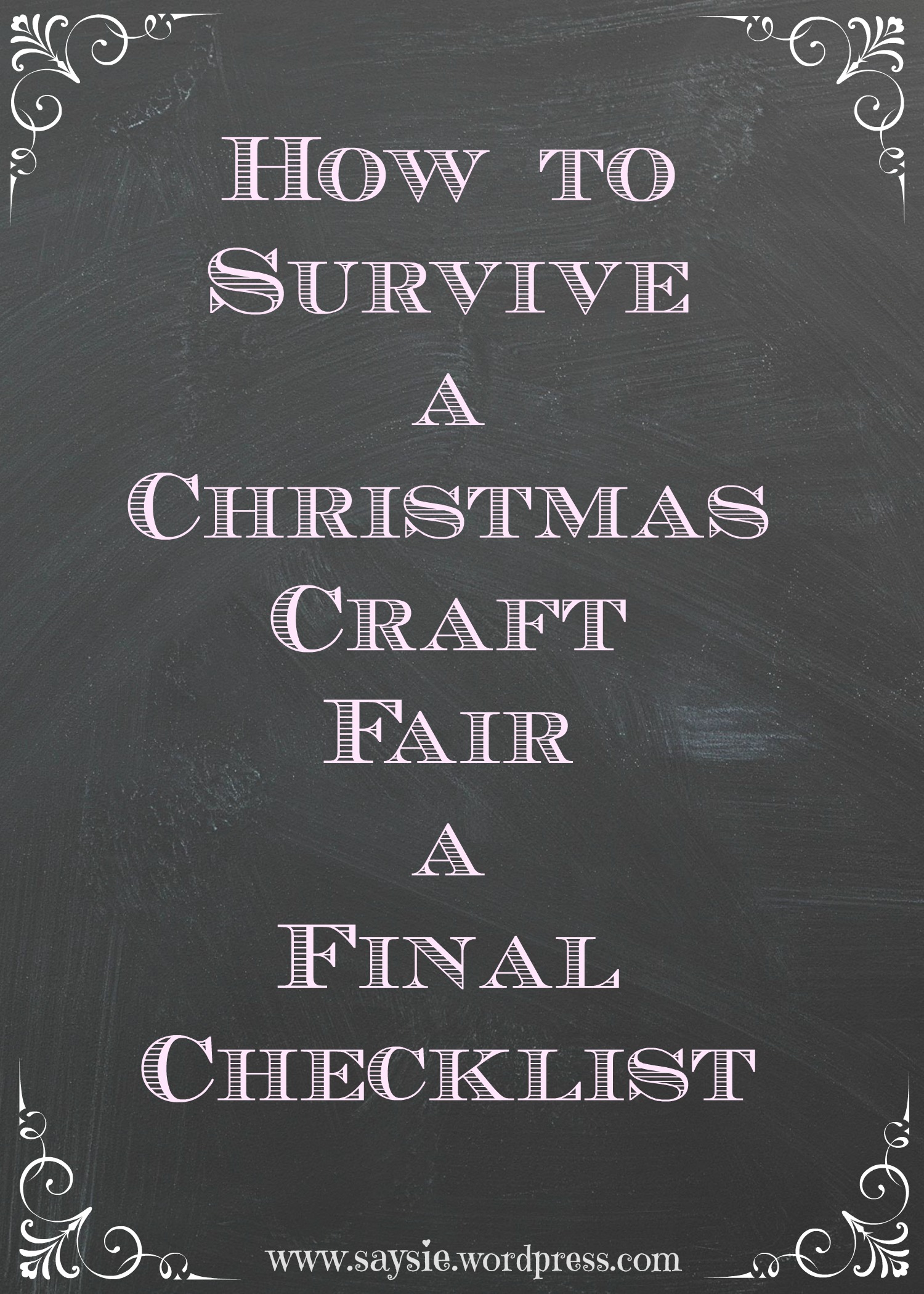 So following on from my previous two posts and the craft fair I did at the weekend I thought it would be handy for people to do a final checklist you can print off and check it off as you get ready. There were a couple of things I wish I had thought of which I have added to the list. Basically prepare for everything and anything. If you know of anything that I haven’t thought of then please feel free to let me know in the comments, I’d be happy to hear them! :)