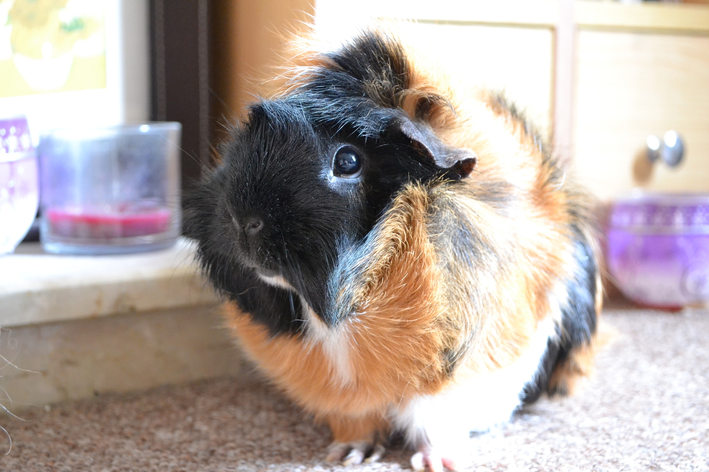 I mean look at their little faces! How could they ever do any wrong? They have a very calming influence on a bad day, and the little wheeky noises they make when they tell us it’s time for their veggies always puts a smile on my face. When I’m feeling sad it’s Teddy I go to for a cuddle if hubby is not around, and he sits on my shoulder and chats away to me, he’s the most cuddly of pigs and why he’s called Teddy Bear. If there was a fire it would be them that I would go back for, they really are my precious ones.