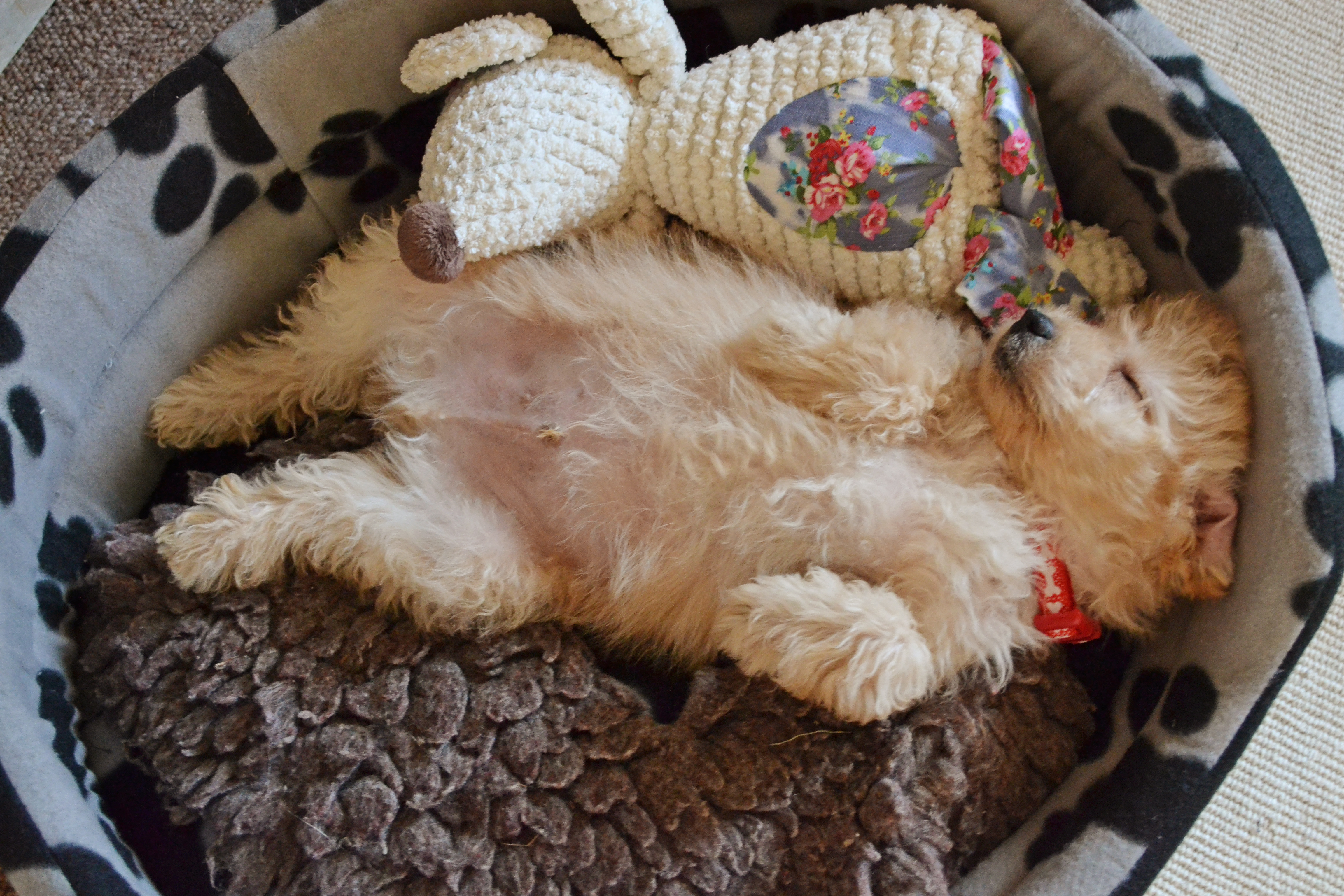 But most of the time he wants to PLAY! At the moment we’re trying to get him out of the bitey stage, and we have a lot of war wounds to show for it. Toilet training in an upstairs flat is proving to be a challenge too! He has his booster jabs tomorrow and then he will be able to go out. We can’t wait :)