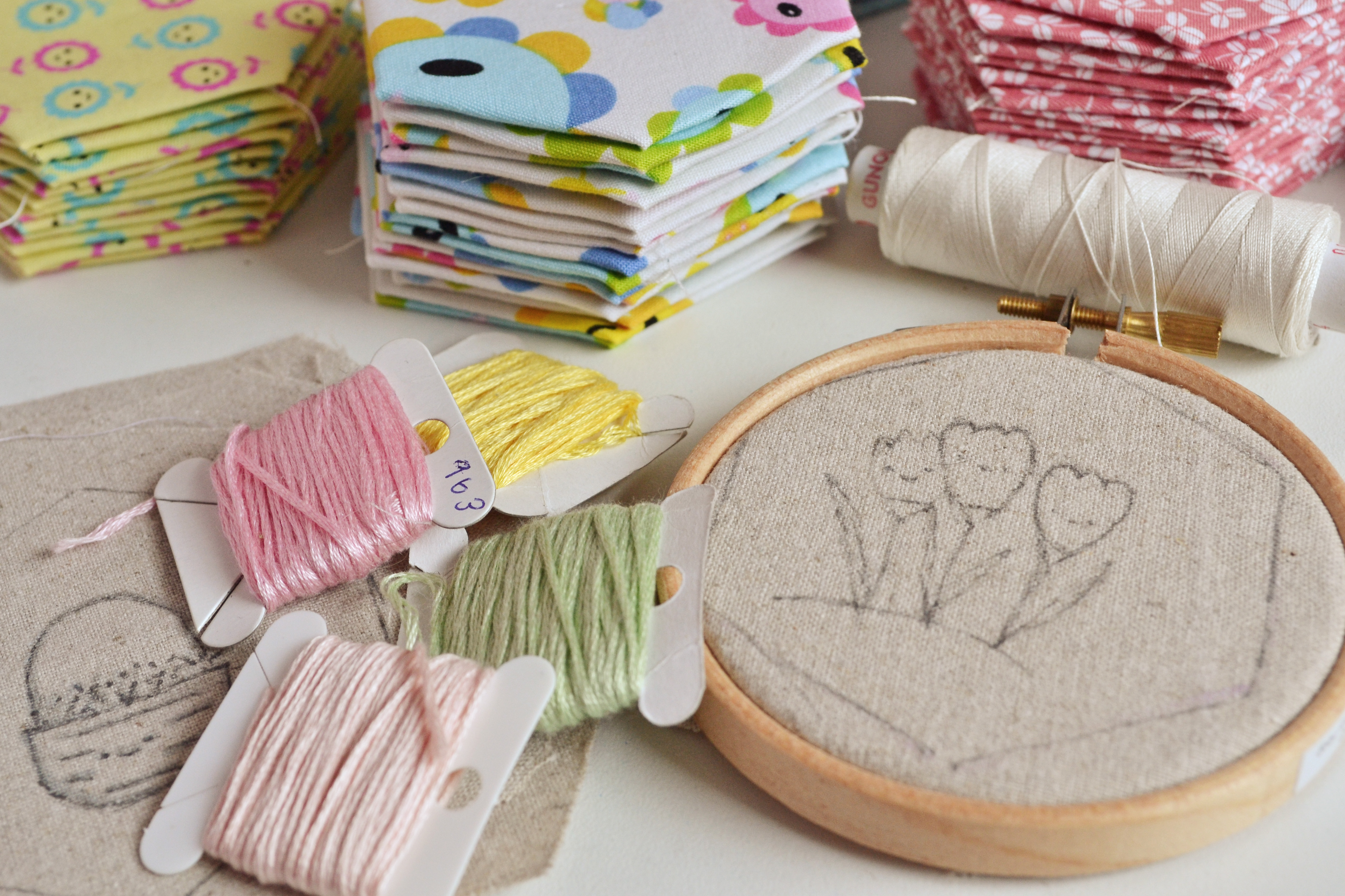 I recently signed up to a Spring Stitching Club from Wild Olive. Each week for 13weeks an embroidery pattern with a spring theme is emailed to you to be downloaded and stitched onto a fabric of your choice, which will become a patchwork lap quilt.