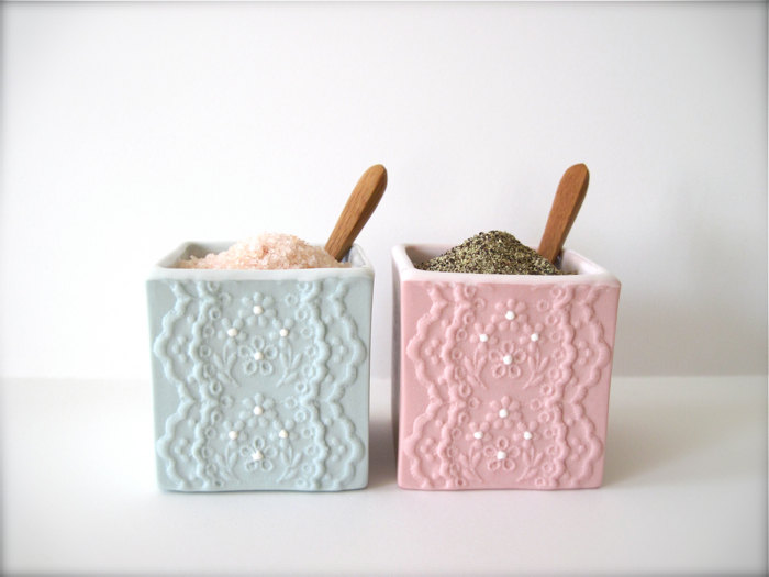 I need to have these!! Porcelain Lace Salt and Pepper Cellers by Hideminy![]()