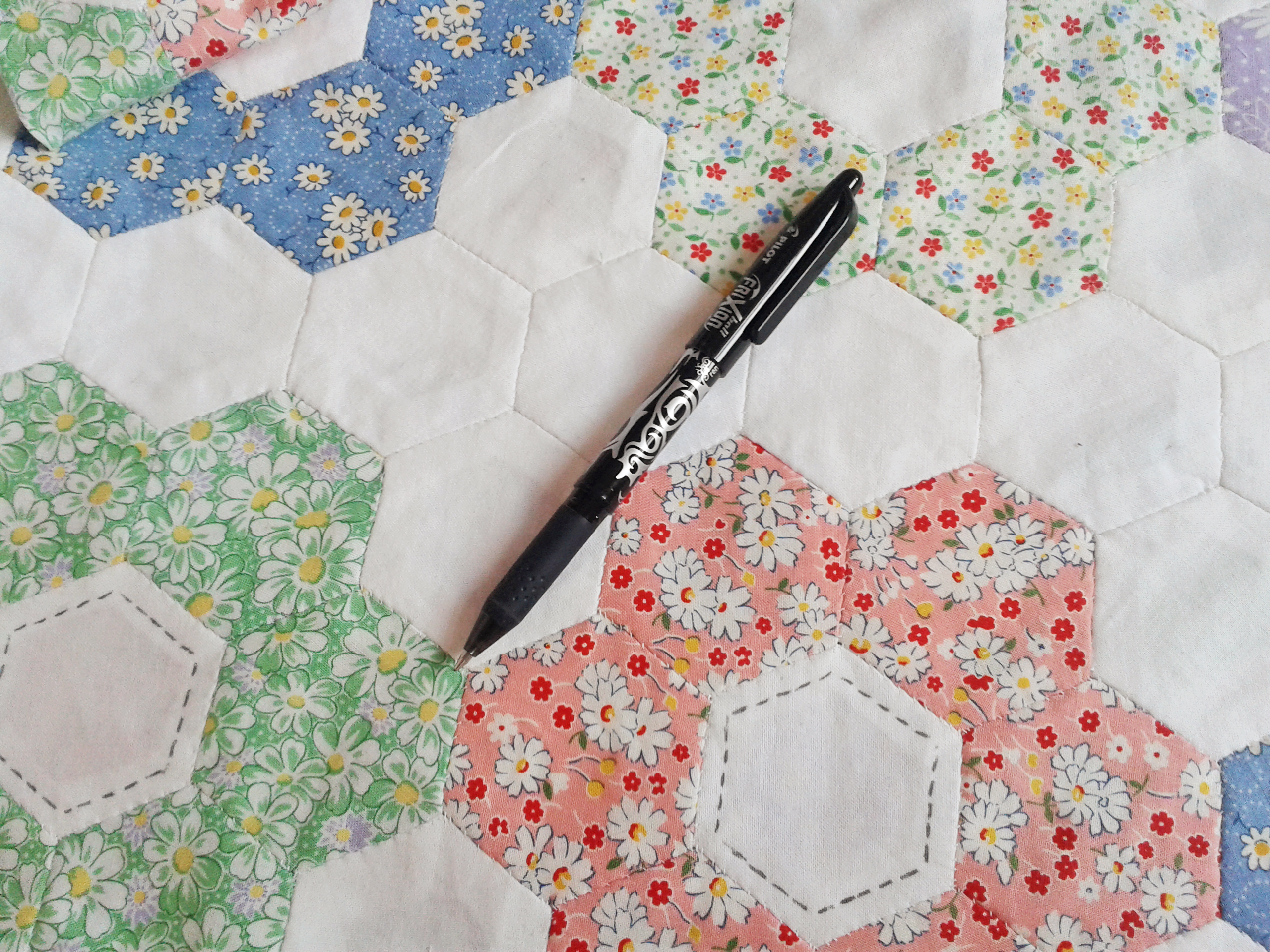 Here is a little sneaky peek, sorry for the bad photo this was taken impromptu on my phone. I will of course have proper pictures of the completed project. I’ve decided I’m going to have a go at hand quilting this one… it seems fitting seeming as the quilt is hand-stitched. The dotted lines you can see are just my markings of where I will quilt, not sure if that’s cheating or not? I’m a bit of a perfectionist though so this should save me some time in the long run.