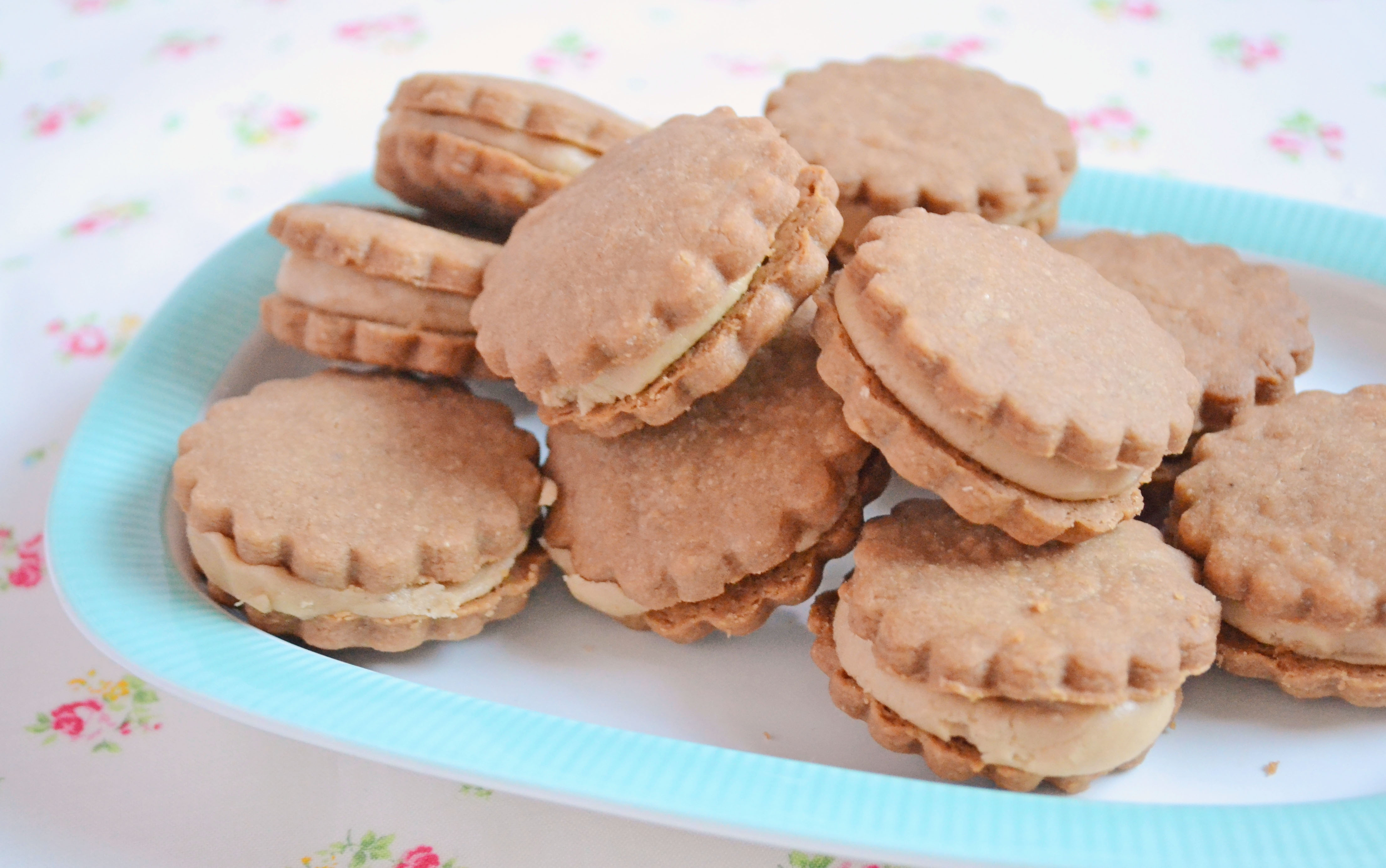 * Pop your icing in a piping bag and apply to one side of the biscuit before topping with the second biscuit. If you prefer you can spread it on but I did find it easier piping it.