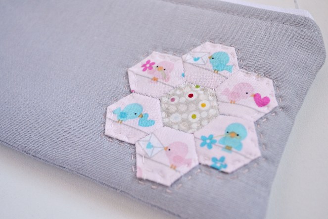 It’s not the first time I’ve fussy cut hexagons (fussy cut is basically picking a certain pattern on the fabric that you want to be your hexagon, it looks really effective but is quite wasteful, don’t forget to add 1/4inch seam allowance around the hexagon.) but the pieces have always been too big for the projects I have in mind. I do have a pack of 1/2 inch hexies but was a little put off at how small they were and how fiddly it would be! However when the hexies are this small there is only one thing for it a fabric glue pen! Just a little dab of the glue in each corner holds it in place, it does make it a little less fiddly.