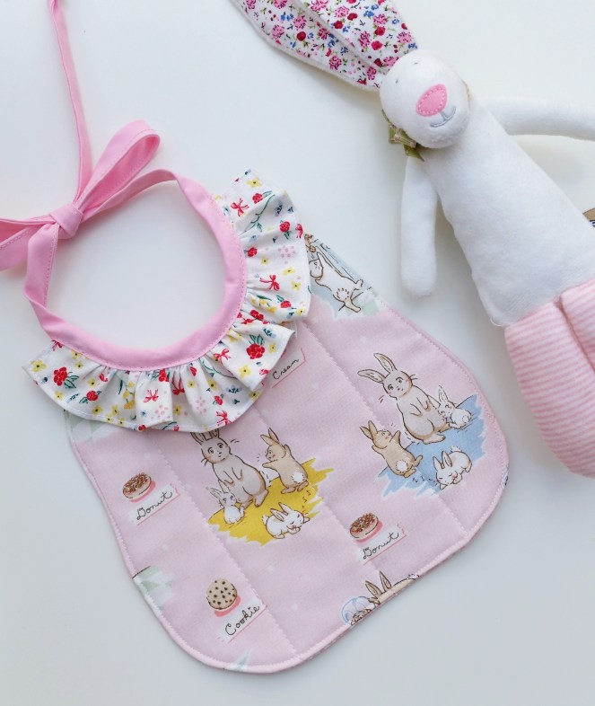 As soon as I saw the new Bunnies and Cream Fabric range from Penny Rose fabrics I knew instantly they would be the perfect choice for the bib.