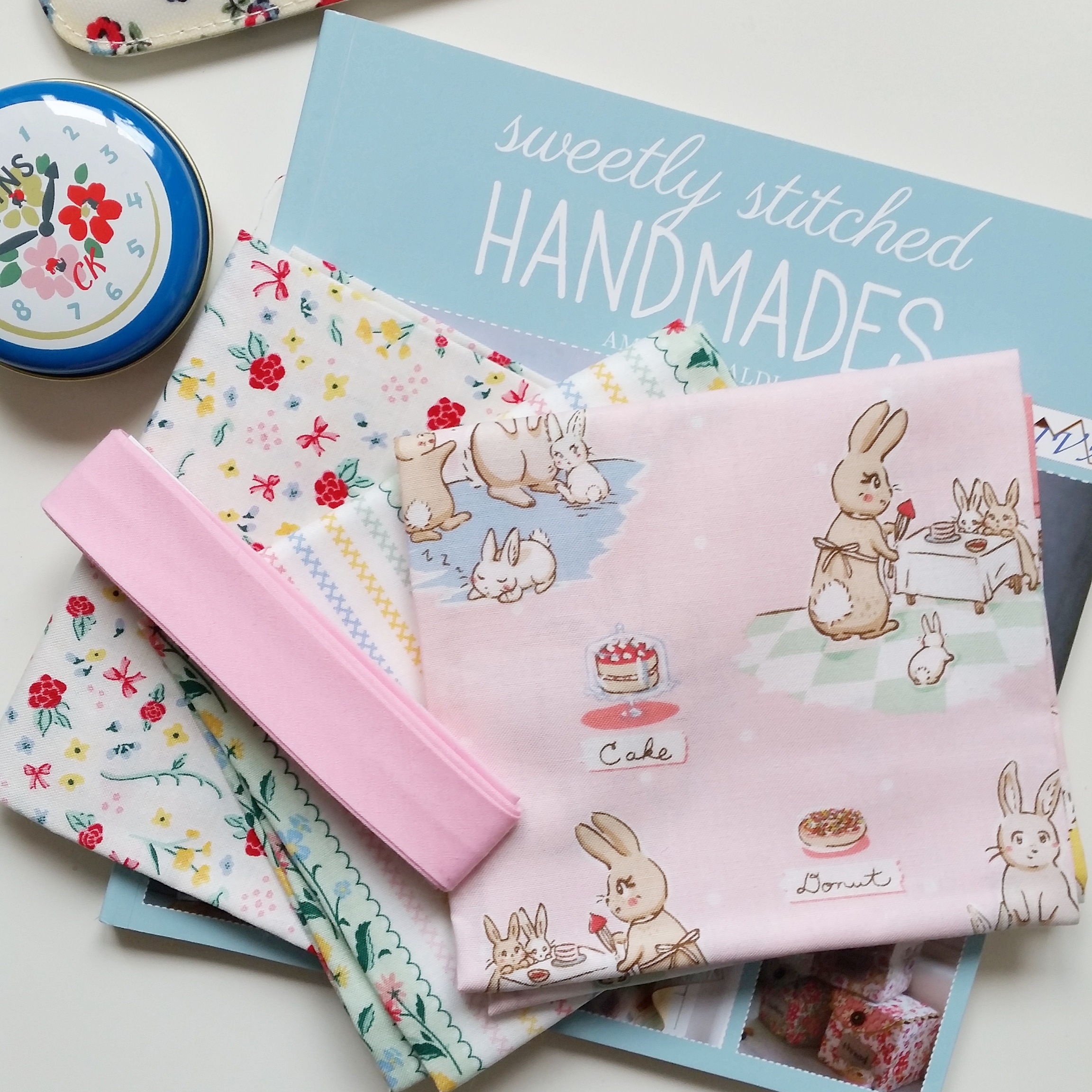I whittled it down to these 3. The main fabric HAD to pink! At the last minute I changed the stripey fabric for a pink polka dot from Dashwood Studios, it just seemed a shame to use it as no one would see it.