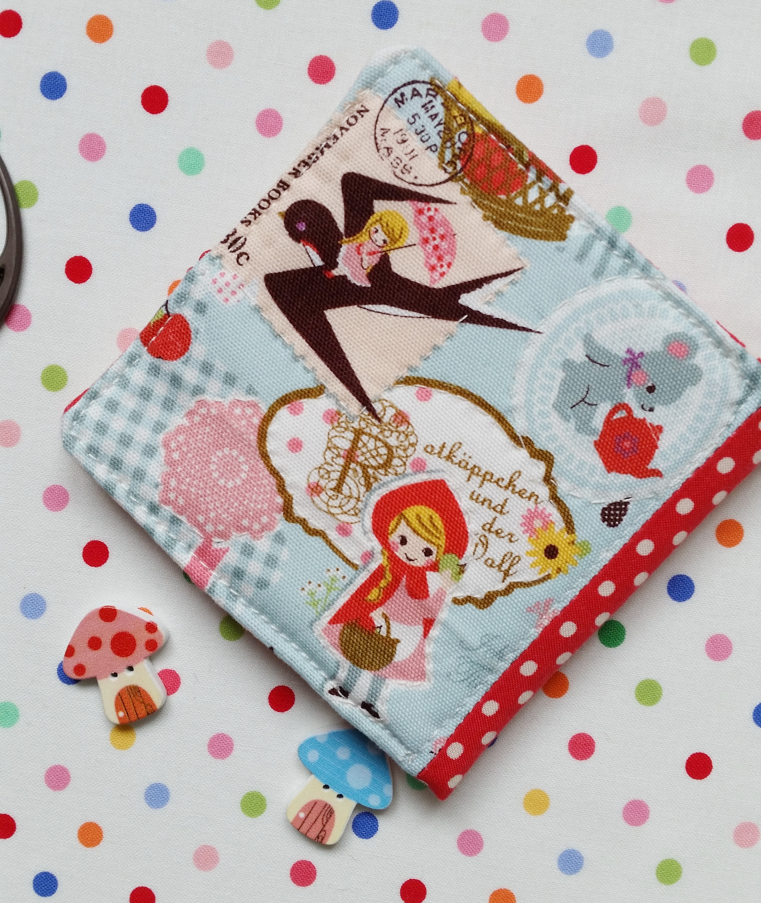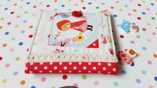 I realise this won’t make sound very ‘professional’ but I kind of made it up as I went along. I just picked some fabric and played with it until it looked right. Sometimes I spend soooo much time looking at and deciding on the fabric, even longer than the project at times! I know I wanted to use the Little Red Riding Hood as the centerpiece for the front, but I just couldn’t decide on how to focus it. There was only one of these pictures left on the fabric, so the pressure was on to get it right! It’s then I saw some lovely Lecien floral and thought the two fabrics worked quite well together.