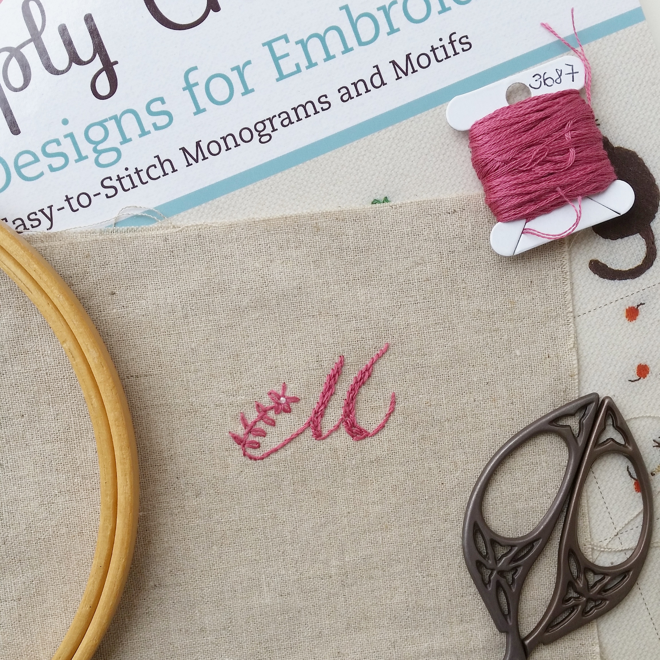I then went onto embroider the little M initial. I bought the book “500 Simply Charming Designs for Embroidery” a few years ago, it’s a Japanese craft book that has been translated into English. Included in it are several alphabet patterns. As soon as I saw the lazy daisy letter designs I fell in love, and so fast forward to now I knew it would be the perfect design for my project. I had forgotten how fiddly I find lazy daisy stitch, it seems to take me a couple of attempts to get each petal/leaf to look like it’s suppose to and even then I’m 100% happy! I think I need to fill a hoop with some and just practice, practice, practice!