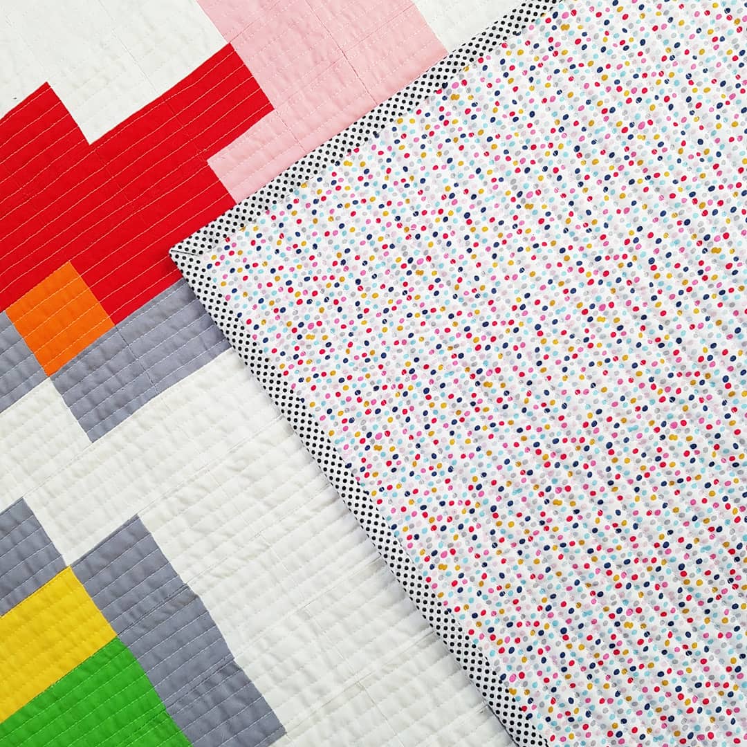 The binding had to be spotty of course and so was the back, I picked a perfect rainbow spotty fabric by Dashwood Studio. Sewing my binding is my absolute favourite part of making a quilt. I love how it makes you sit, relax and reflect a perfect finish to a project. Of course the added bonus of this time of year is it keeps you warm too!