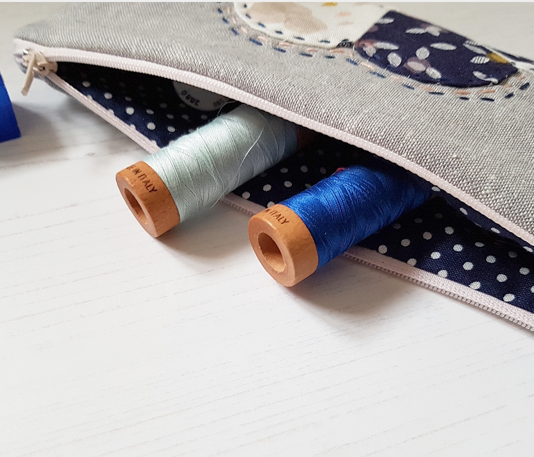 Unfortunately after I finished the hand quilting it rather shamefully sat in my wip pile until I could take it no more I had to turn it into a sweet little pouch! I don’t know why I left it so long! It’s now going to hold my Aurifil 80wt thread. Last weekend I misplaced a spool that I needed and it drove me mad looking for it! Now I have a special place just for them!