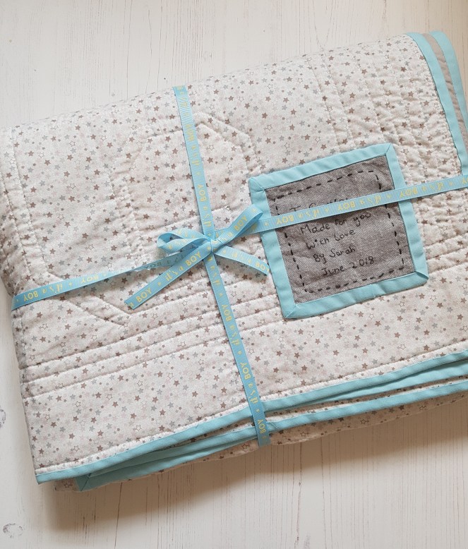 When she got in touch with me to say she’d had him but he was very poorly and in the intensive care unit of a different hospital my heart just broke for her! I cannot even imagine the pain and the worry she was going through! I didn’t sleep at all well that night, thinking of her little family and woke up very early with a renewed determination to get the quilt finished. I may not be able to be there for them physically but hopefully this handmade gift would show that I was there in spirit and thinking of them.