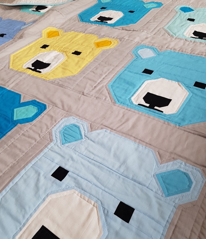 After sleeping on it I knew I couldn’t just let all my hard work go to waste so I unpicked all my *very* wonky lines and decided to quilt around the bears with matching colours! Luckily I have a good stash of Aurifil colours and was easily able to match them up.