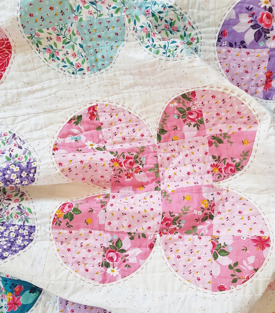 This is really pretty, I love the simple design which makes the fabrics shine. I haven’t done a drunkard’s path block in a few years but might have another try. I learned the block at a class and made a cushion about four years ago, then I found a pattern in a book to make a baby quilt with very large drunkard’s path blocks. I did notice that the bigger block is so much easier to work with.