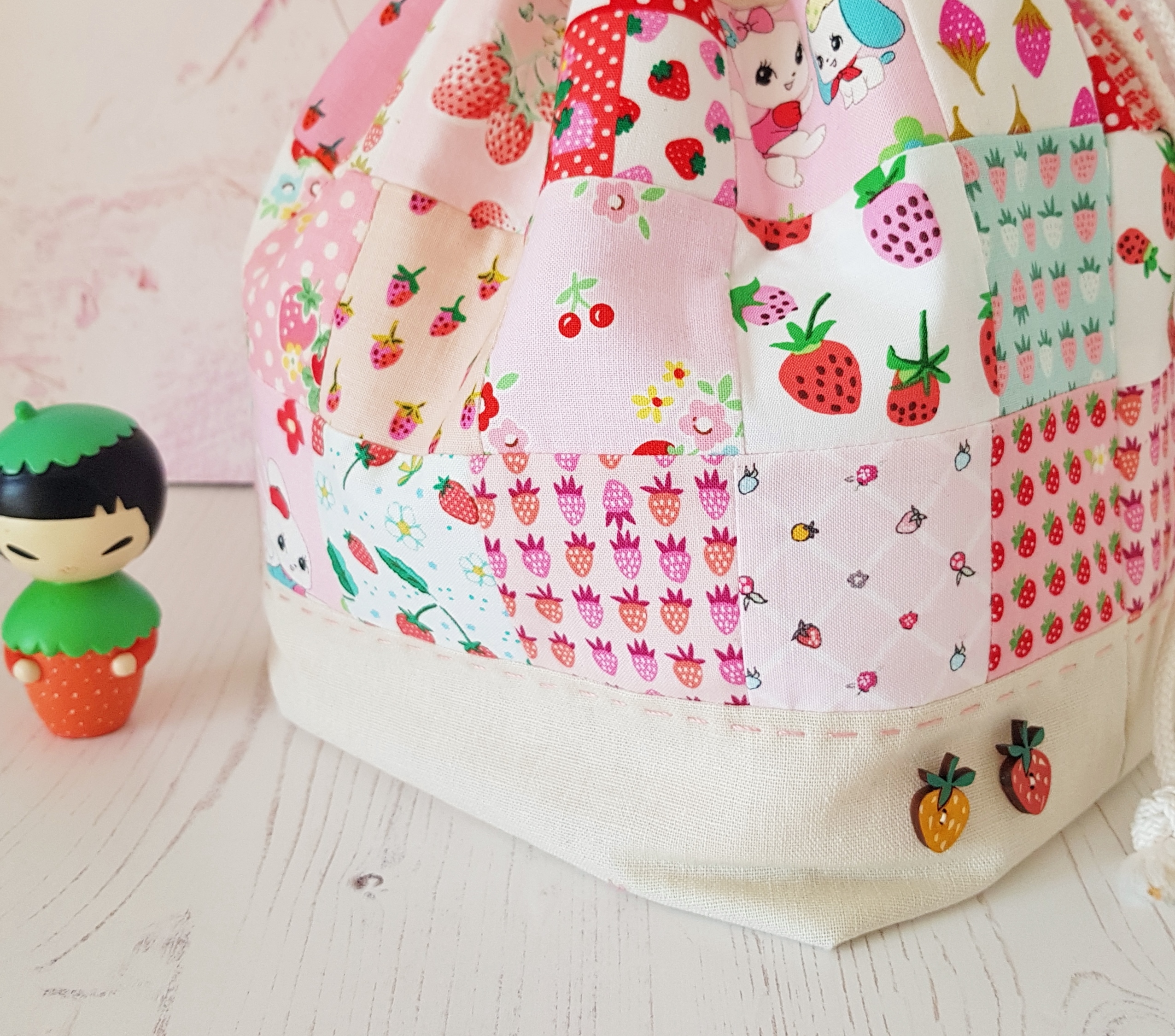 Being a huge fan of a strawberry print it wasn’t particularly hard to dig through my stash to find some, and fresh from the fun of making my last Finch Bucket I decided to make another!