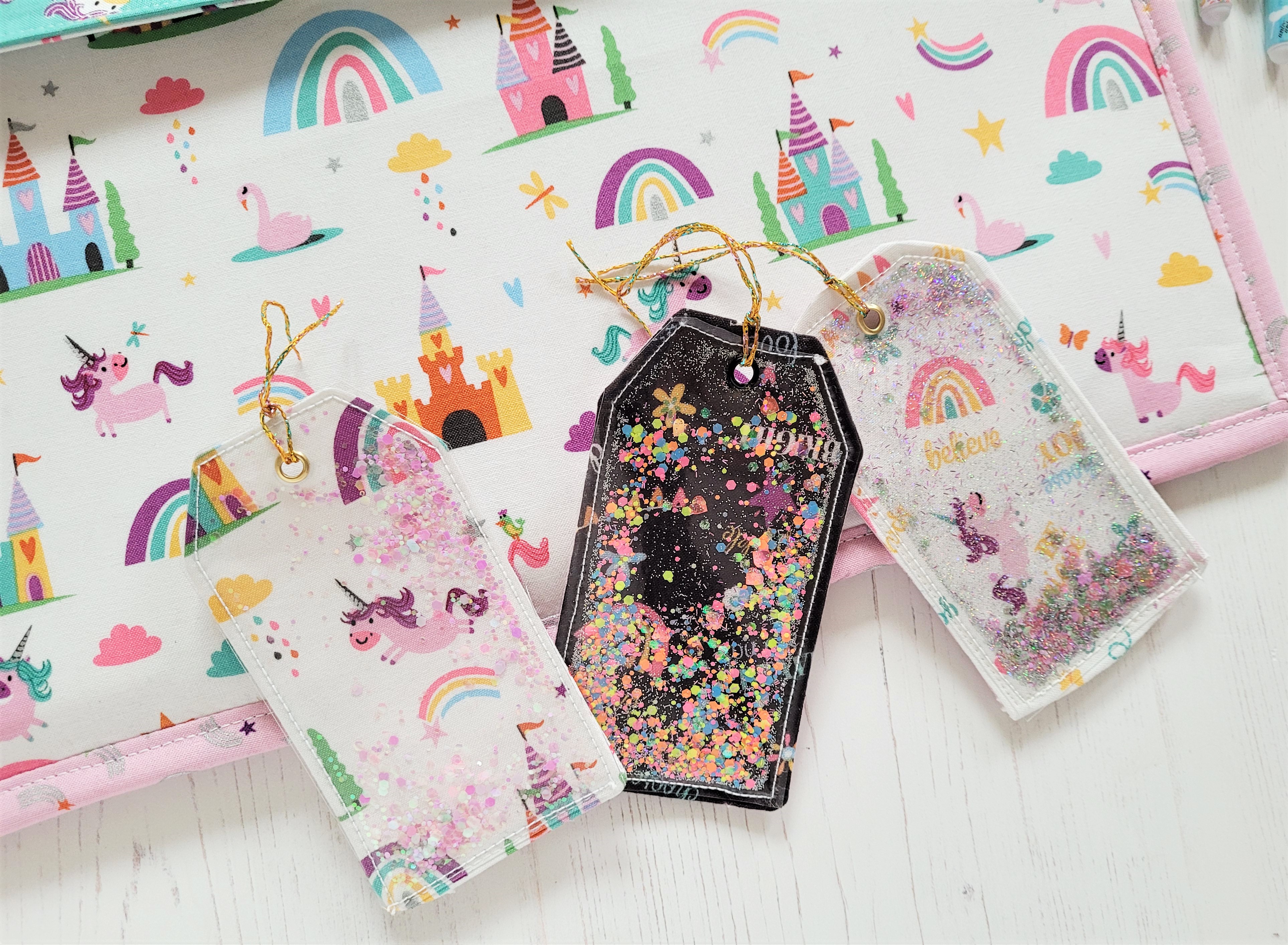 I also couldn’t resist making some fun sparkly name tags, after being inspired from last week’s Glitta Pouch challenge, I wasn’t quite ready to pack away the glitter!